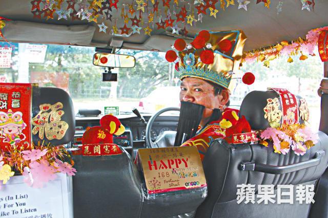 【本報訊】財神到,財神到,好走快兩步!六十九歲的士司機泉哥是快樂老實人,年卅晚人人收爐,他卻自掏腰包將車廂佈置得充滿新春節日氣氛,身穿財神袍、頭戴財神帽,為乘客帶來歡樂,將希望傳送到每個地方。有乘客登上這部全港獨一無二的「財神的」,感覺如同真是獲得財神眷顧,一年行好運。