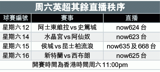 其他場次,阿士東維拉鬥史篤城,是舒活執教鞭後首仗,預計士氣會較傷兵滿營的對手佳,平手盤值博。至於侯城迎戰昆士柏流浪這場護級大戰,雙方都要搶分,入球「大」又豈能錯過。文:東尼