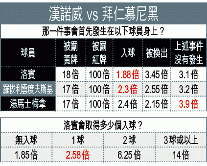 拜仁慕尼黑雖有下周歐聯後顧,但實力在主隊漢諾威之上,[-1]「客勝」值撐。(球賽編號:星期六19;有線61及201台今日10:30pm直播)慕遜加柏歇冬後六場聯賽四勝一和一負,而且強陣,作客冇態的緬恩斯(球賽編號:星期六52;有線61、64、201及203台明日1:30am直播),平手必捧。文:青蛙仔