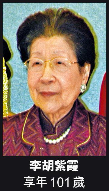 【本報訊】東亞(023)主席兼行政總裁李國寶的母親李胡紫霞,上周四以一百零一歲高壽辭世,昨日於香港殯儀館一樓主澤堂設靈,以基督教儀式進行,冠蓋雲集,政界包括特首梁振英、政務司司長林鄭月娥等人出席,商界則有前電盈(0008)副主席袁天凡,他聯同任恒生(011)行政總裁的妻子李慧敏,率領一眾恒生高層到場。另外名人如賭王四太梁安琪等亦到場弔唁。今日早上十時將假聖約翰禮拜堂舉行安息禮拜。