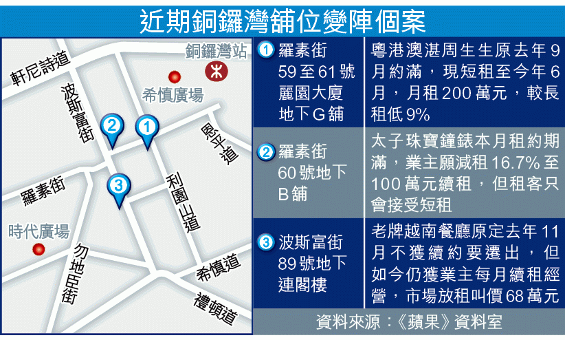 此外,鄧鉅明旗下太子珠寶鐘錶承租羅素街六十號地下B舖,實用面積約八百方呎,於本月中租約到期。由於舖位租金見頂回落,舖位業主「小巴大王」馬亞木早前明言減租17%至一百萬元留客,但太子依然無意續租,只會考慮短租經營。