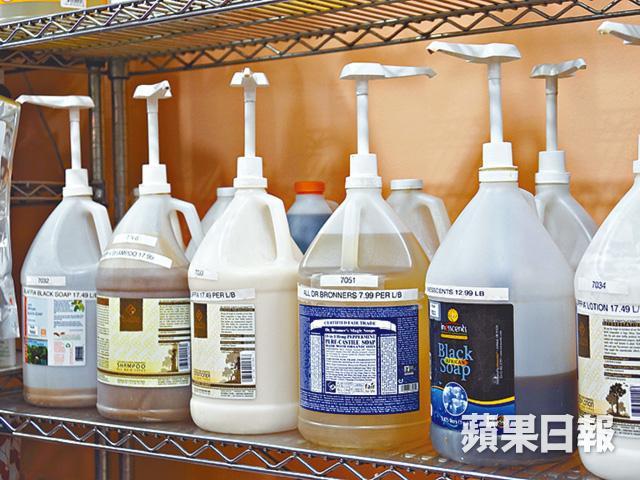 我還以為她平日會駕車,她卻單手抽着幾斤重的食材,行逛半天也沒呻半句辛苦;最後她網上自學製作清潔用品,每周不用花上一小時就做好洗衣粉、清潔劑、潤膚乳、牙膏等用品。洗潔精用有機的橄欖油皂液(Castile soap),「這在美國很普遍,一般有機店都有售。我甚至用來洗手、洗澡、洗頭、洗廁所和衣服,因為它既不傷皮膚,又幫我省去找尋無包裝清潔用品的時間。另外,有很多有機店售賣的清潔用品,不是加入很多不知名的成份,就是隱藏部份資料。當你親手做過清潔劑,就知道產品成份表上的三種材料,沒可能製成像忌廉狀的沐浴露,成份有可疑的我就不會買。」Lauren娓娓道來。