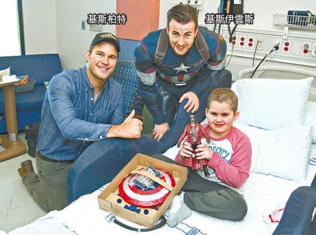 「美國隊長」基斯伊雲斯同埋「星爵」基斯柏特呢兩個同樣叫基斯嘅超級英雄,最近又再合作,一齊去咗西雅圖兒童病院探病童,基斯伊雲斯仲着埋套戰衣出席,搞到一班小朋友好興奮。