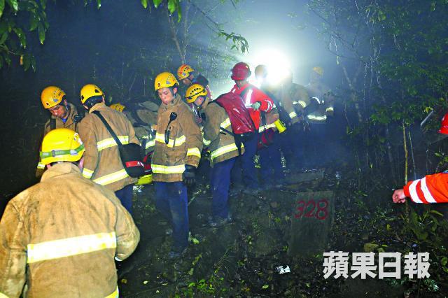 【本報訊】五名男女前日結伴往飛鵝山行山,其中一名二十二歲女子地滑跣腳失平衡,直墮著名的險要「自殺崖」。幸大難不死,被五米深的崖石托住,因懸崖陡峭狹窄,同伴欲救無從報警。礙於濃霧致視野不清,政府飛行服務隊直升機無功而還。消防出動「高角度拯救專隊」上山救人,事主被困十二小時後獲救,送院後目前情況嚴重。