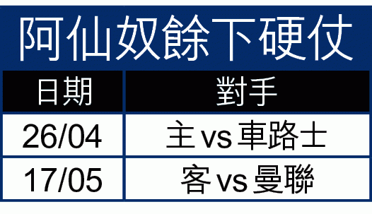 兵工廠憑比利連、奧斯爾及阿歷斯山齊士入波,半場已領先紅軍3:0;完場前再有基奧特射入近七場聯賽第八球,最後炒4:1。大勇的基奧特說:「我們當然希望聯賽排名越高越好,但在挑戰車路士及曼城之前,我們必須做好自己,全力踢好餘下每一場。」阿仙奴餘下硬仗不多,要是在本月尾迎車仔這場「六分波」勝出,仍有機會圓冠軍夢。