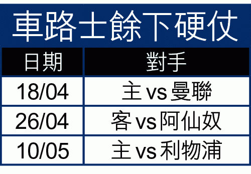 雲帥說:「我們的任務仍未完成,還要與前四球隊交手,聯賽榜已顯示他們是最出色的球隊。我們在分數上有優勢,有失分空間,但當中仍存在變數。我追求更高排名,打吡戰(下周日迎曼城)將會決定一切。車路士應該是冠軍,不過你總要繼續向他們施壓。」