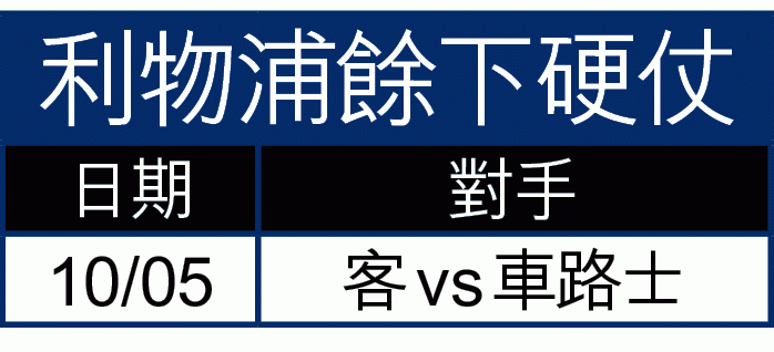 車仔上周六英超迎戰史篤城,戰至39分鐘由夏薩特射入12碼領先1:0,但只開心了五分鐘,便被對方中場查理阿當離門66碼外,笠死企出禁區的門將泰拔高圖爾斯,半場慘被逼和1:1。
