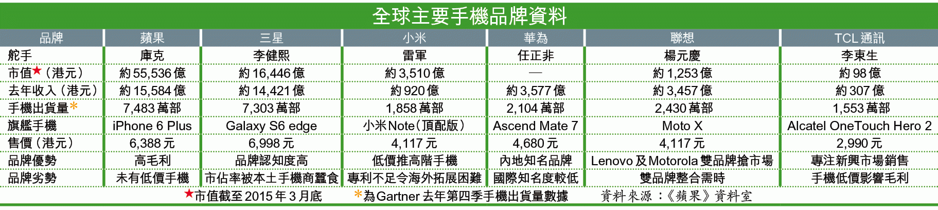 曾被三星及蘋果兩大陣營為主導的智能手機市場再起風雲。蘋果的「大芒」iPhone 6系列大賣,創下賣手機比賣石油更賺錢的神話,但過去的傳統國際大品牌卻開始踏入衰落之路。大肆推廣「高性價比」的低價高階手機靜靜起革命,殺出血路;亦有本地薑品牌越受當地人歡迎。分析指過去的高毛利時代經已終結,各大手機品牌將面臨混戰。