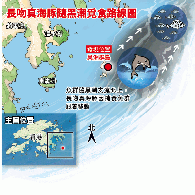 本港海豚專家洪家耀看過片段,根據海豚身旁如沙漏狀圖案及呈黃色的前半身,推斷當時集體亮相的是極少在香港水域出現的長吻真海豚,估計至少有300條。他指過去40年,長吻真海豚訪港次數不多,今次一次過有逾300條現身,應是本港有史以來最多,懷疑海豚因覓食闖入本港水域,或集體經過本港。