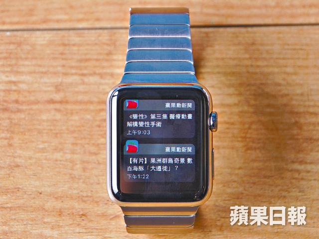 健康功能是Apple Watch的一大賣點,筆者實試錶內預載的「活動記錄」及「體能訓練」。前者是長開功能,三個顏色圈分別記錄卡路里消耗量、運動時間及站立次數,每日完成三個圓圈便達到最基本的健康目標。它更會每小時提醒用家稍作站立,對很多長坐辦公室的香港人來說十分實用,試用發現運動時間及站立次數的數字頗為準確,但卡路里消耗量則未能測出其準確性。Apple Watch亦會記錄心跳率,若按用家指示測量約需十多秒,同時它亦會定時自動記錄,比其他智能手錶更能有效掌握健康數據。「體能訓練」則會按用家選擇的運動種類,作精準測量及記錄時間、距離、速度、心跳和熱量等資料,手錶更會根據你所達成的活動目標,頒發不同獎章,算是有趣的鼓勵。