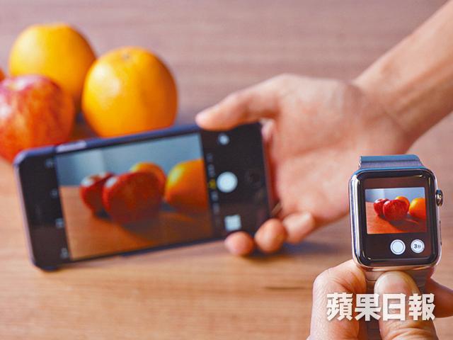 Apple Watch本身並無內置影相功能,但卻設有拍攝app,一按即可遙控開啟iPhone的拍攝功能,其間完全不用操作iPhone,比一般智能手錶更方便。當然,亦可控制快門,並選擇三秒自拍,錶面同時是鏡頭觀景器,即時同步看到iPhone的拍攝影像。實試手錶跟電話畫面幾乎完全同步,沒有時差問題,一大班人自拍也十分方便。