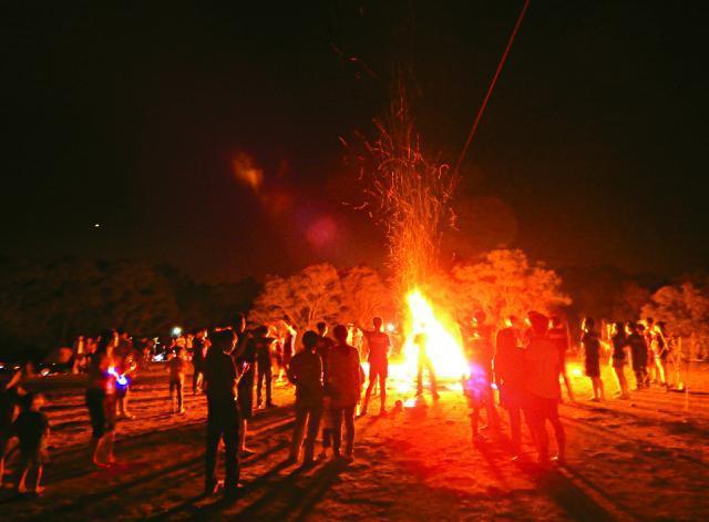 【本報訊】三十多名中大學生周日(5日)到西貢灣仔露營,在西營地草地搭建木架舉行營火會,火舌高達4米,有在場露營人士指火源與周邊樹木及營地甚近,擔心引發山火,而活動照片在facebook曝光後,亦引起網友狠批。漁護署稱指定露營區准許生火,但提醒若燒着周邊植物將觸犯法例,可判監或罰款。中大聯合書院回應會聯繫籌辦學生了解事件。
