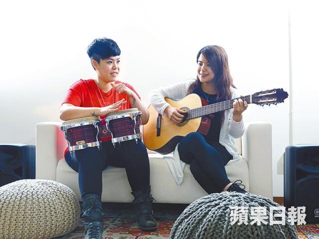 二汶再問:「哪你怎樣知道不同位置的距離呢?」「阿sir會用blu-tack貼在有關位置,到我練習時一摸到就知道那是第幾格,從而適應距離感。」反反覆覆地彈奏,才發現聽覺的記憶不比視覺差,音感也隨之而來,二汶在旁順勢教她一些節奏和其他和弦彈法,Jan也很快掌握,二汶有感而發:「視覺有時會讓人分心,不能專注做一件事。」音樂是靠耳朵鍛煉,Jan笑言一直對聲音特別敏感,即使是看電影也比平常人留意配樂,高低起伏的音樂可告訴她故事的起承轉合,「有時看電視劇集聽到一些好典型的音效時,不禁覺得:『太求其吧』。」