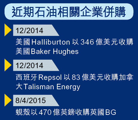 事實上,近期有多間石油相關企業進行併購,當中包括石油服務公司Halliburton以350億美元收購同業Baker Hughes。