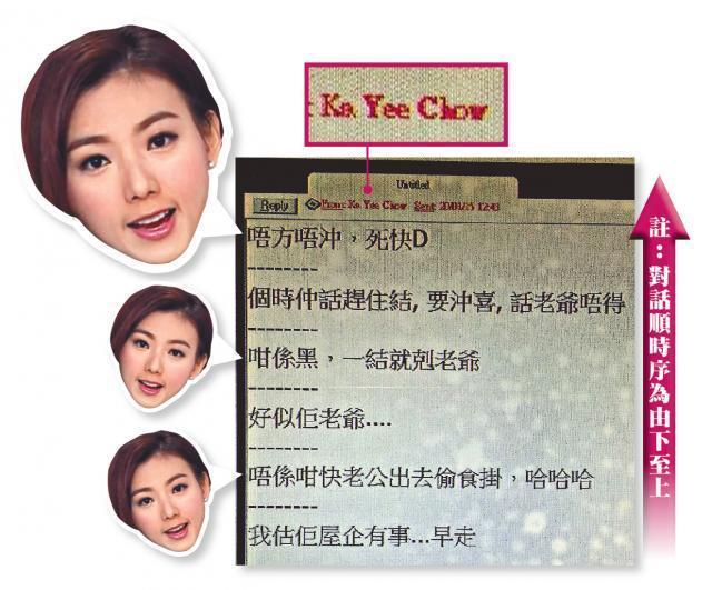 呢張截圖疑似係周嘉儀與舊同事,今年1月透過公司內聯網一問一答傾偈,上端寫住Ka Yee Chow,應該係由佢回覆。