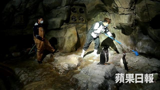 場館的清潔對企鵝健康很重要,擦地消毒便成了企鵝護理員每朝首要的工作。當然,進入長期維持於8度室溫的雪地前,要先穿上厚厚的羽絨制服保暖。清除企鵝隨處留下的糞便也是常做的步驟,要把全個場館也清潔一番,動輒也要用上一小時。動主播CK表示,企鵝長期吃魚為食糧,導致「便便很腥」。