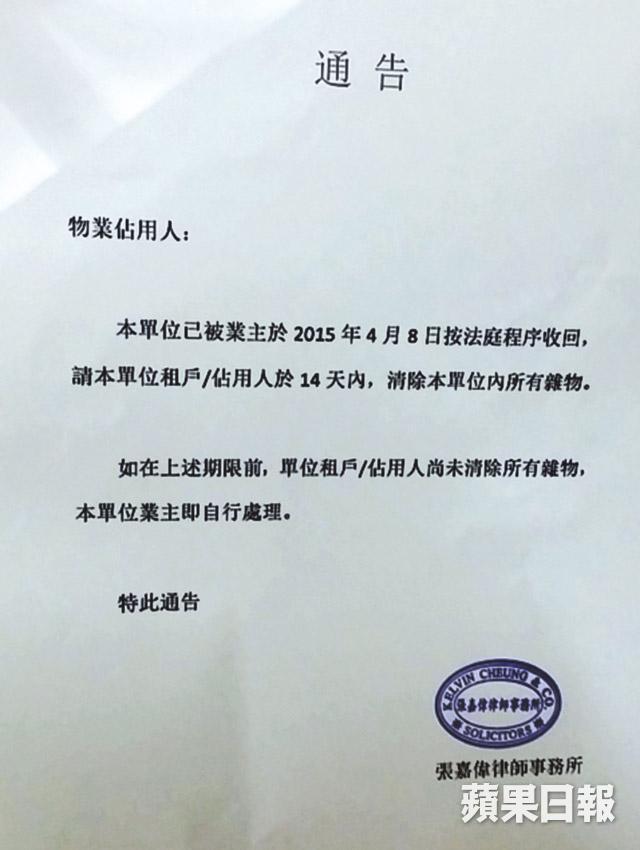 梅媽欠租的跑馬地單位門口貼上中英文通告,要求租戶/佔用人於14日內清除所有雜物。梅媽透露昨日寫了三封信,分別予法官、滙豐和律師,打算取回阿梅僅餘的一層樓居住,梅媽謂:「快活閣以前係商天娥賣畀阿梅,阿梅之後畀Ann(梅愛芳)住,阿明又住過。如果唔畀鎖匙我,就唱衰佢,仲要恰到我點樣程度呀?我買定個帳篷喺法庭門口,連阿梅神主牌都擺埋喺嗰度瞓覺囉。」