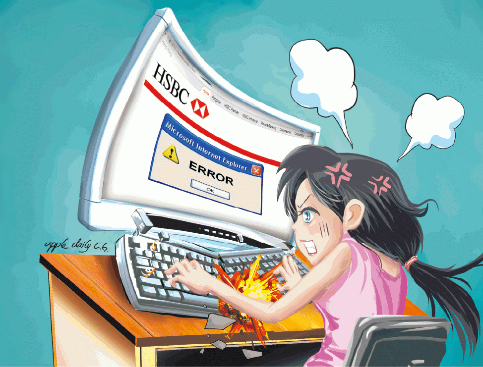 張小姐於是返回上層大堂,赫見全線櫃枱服務癱瘓,「隔籬有個客有10幾萬要存入銀行」,最後銀行職員收取款項,並以人手寫下臨時單據給予客戶,稍後待電腦系統正常才更新存款資料。張苦等近兩小時至昨傍晚6時半,見銀行系統仍未恢復決定離開。她批評:「唔知滙豐點解死機,但如果係黑客入侵,都幾驚喎!」