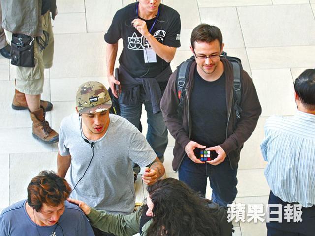 未埋位前,祖瑟夫坐在一旁,神情落寞及單手托頭,未知是否為投入角色。劇組昨出動約60名工作人員、30名臨時演員及借用一帶的錶位拍攝,十分大陣仗,主要拍攝商場戲份,而曾演「新版冼樸」的沙查昆圖(Zachary Quinto)亦有現身,飾演訪問斯諾登的英國《衛報》記者格林華德(Glenn Greenwald)。不過劇組在現場築起屏風,慎防劇透。