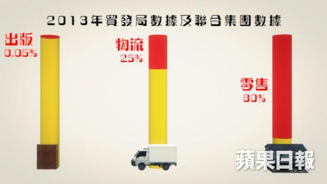 貿發局2013年數字顯示,全港有1584間出版社。聯合直屬出版社只佔0.05%,但其物流公司,卻代理四分一的出版社生意,旗下三中商書店(三聯、中華、商務)門市覆蓋更達八成。