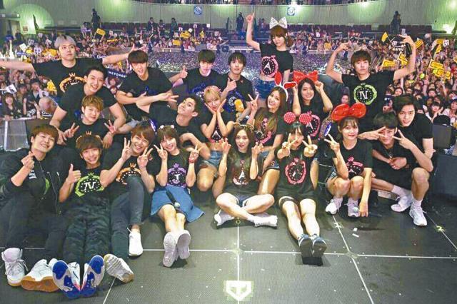 眾FNC旗下歌手包括FT Island、CNBLUE、AOA等前晚喺完騷之後齊齊喺台上影大合照,大晒「親情」。