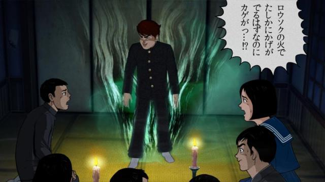 〈TOMOTOON 3D動漫畫〉當有真正幽靈出現的時候,蠟燭的火焰是會圓圓地鼓著燃燒。同學們嚇怕了,希望鬼形不要再說了。同學們更發現在燭光下的鬼形是沒有影子的?
