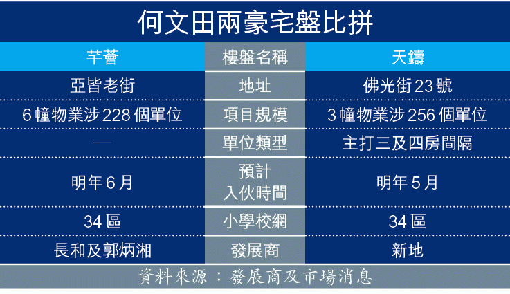 兩盤小學校網同為34區,樓花期亦接近,預期入伙期分別為明年5月及6月,主攻市區換樓客,勢掀起搶客激戰。據知,郭炳湘與長和各佔芊薈約一半權益。惟樓盤仍未取得預售樓花同意書,不排除旨在搶焦點。九龍區近期有多個豪宅盤推出,呎價動輒2萬至3萬多元。