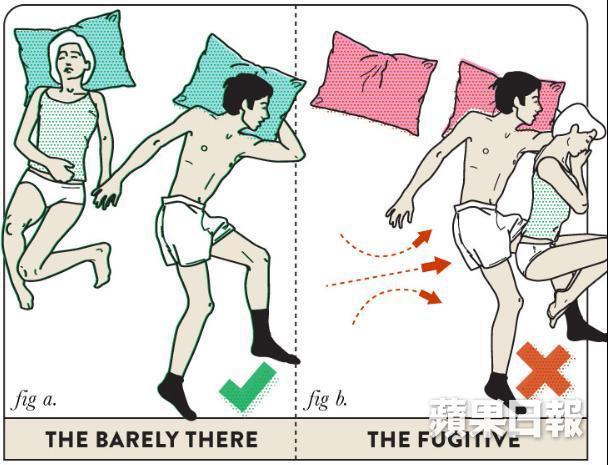 情侶總難黏住瞓足全程,偶爾換個姿態,拖着手各有各睡也夠sweet。太進攻把伴侶迫到牆角,臉貼臉變成臉貼牆。