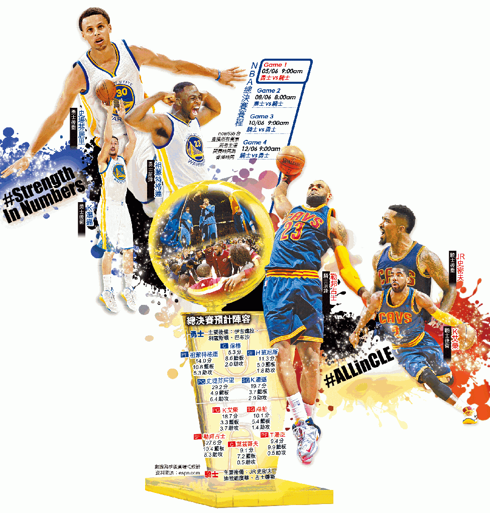 【NBA話題】萬眾期待的NBA總決賽本周四掀起戰幔,西岸冠軍勇士大戰東岸盟主騎士,由兩代MVP史堤芬居里(Stephen Curry)與勒邦占士(LeBron James)率領兩班風格截然不同的「兄弟幫」,上演終極對決。(now635台明日9:00am直播Game 1)