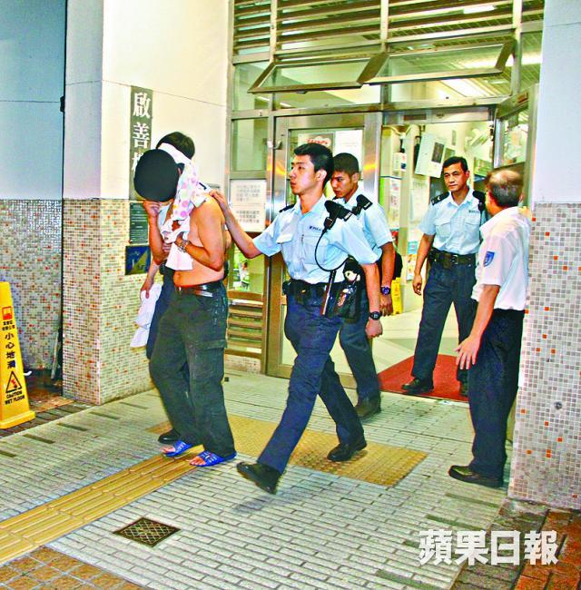 消防員張開救生氣墊戒備,警方談判專家到場游說,赤膊的陳不時爬上爬落,在簷篷手舞足蹈,險象環生,談判專家經4小時游說後,陳終被勸服返回屋內,其後涉嫌傷人被捕,其妻女則送院檢查。