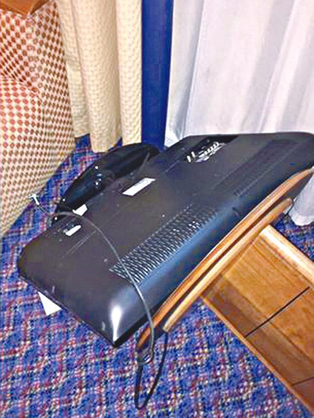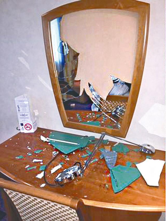 酒店員工即時報警,警方透露:「一名住客在酒店房內破壞了值1200英鎊(約1.4萬港元)的財物,我們已經知道疑犯名字,是一名來自美國的24歲男子。我們現正與有關機構合作追蹤他以便調查。」