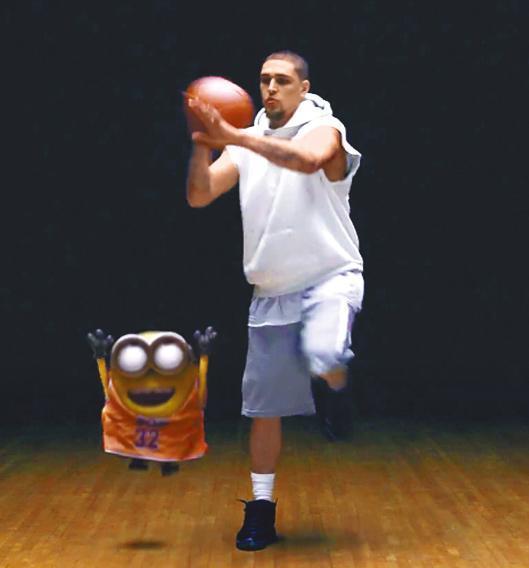 另外,於迷你兵一條跟NBA球星打波的預告片中,因身材太矮細連波也碰不到(下圖),但觸球在手拍波時卻論盡地將球彈到自己!