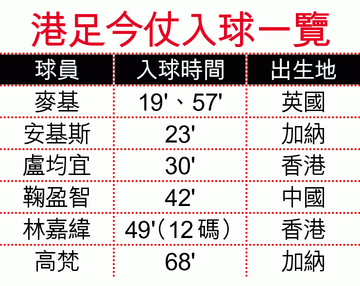 【2018世界盃外圍賽亞洲區C組】世界排名164位的香港足球代表隊,賽前因國足歧視海報風波,引發更多球迷入場力撐;昨晚在全場爆滿的旺角場出戰世盃外,展示不同膚色球員合作的威力,華洋各將炮製七個入球,以7:0大勝業餘隊不丹。