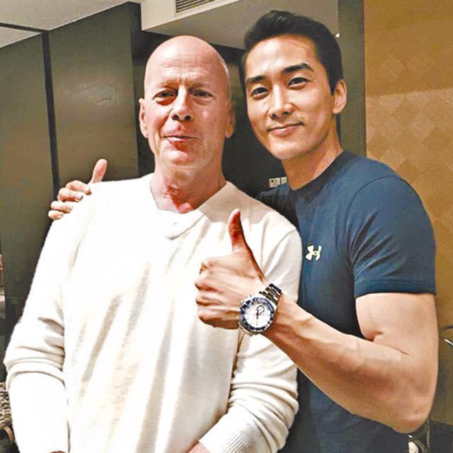 另一韓流始祖宋承憲,昨日於twitter公開跟荷李活巨星布斯韋利士(Bruce Willis)的合照,並用英文留言:「與我的英雄在一起。」二人近日因合演新片《大轟炸》而變熟,新片以1937年日本對重慶進行為期五年的空襲為背景,宋承憲飾演戰鬥機飛行員,而布斯就演教官。