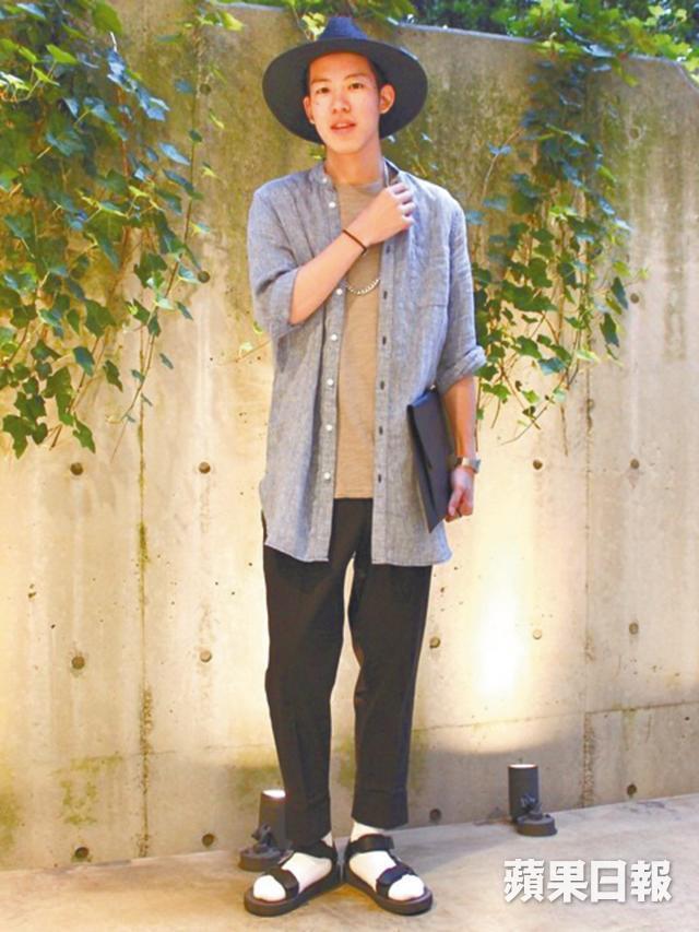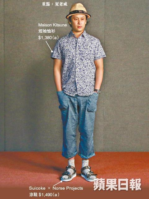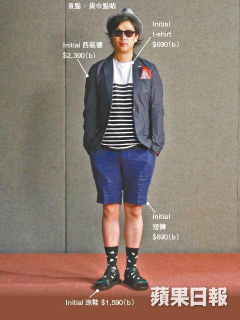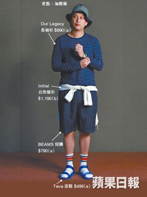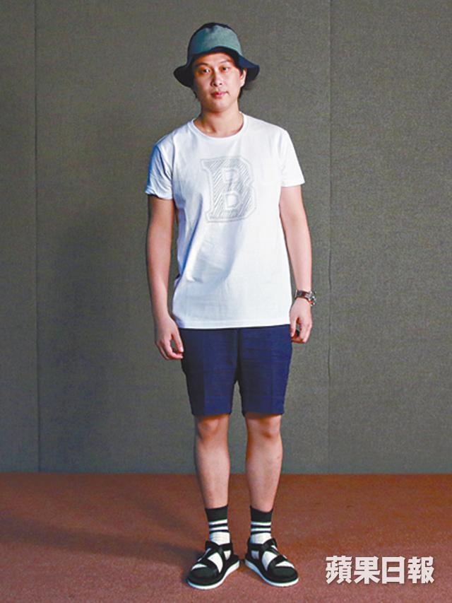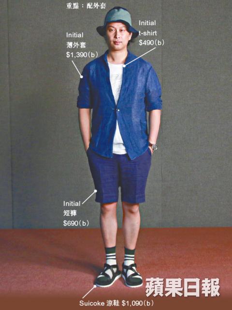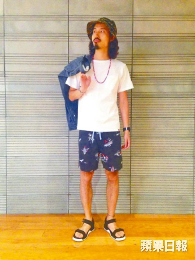 最普遍港男造型,白色T-shirt加短褲配襯涼鞋最容易出事,因為太街坊look,難免有街邊大叔感覺。為免太單調像落街買餸,可添一件中袖薄外套加強層次感,嫌太熱的話,可把外套縛於肩上作點綴。