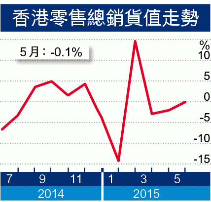【本報訊】本港5月零售表現稍見起色,期內銷貨總額按年只微跌0.1%,至390億元,好過市場原本估跌2.1%的預期。零售管理協會主席麥瑞琼認為,生意略為改善,主要是靠商戶加大力度減價所推動,她指目前零售市道仍然疲弱,擔心美國年底或加息、港元續趨強的情況下,下半年零售市道會進一步受壓。
