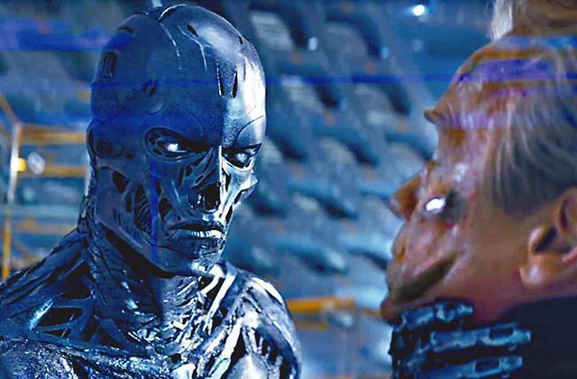 戲內幾乎所有角色已換上新面孔,但阿諾的T-800無可取替,要重現舊版T-800,自然要利用電腦特技將阿諾在首集《未來戰士》戲份再度呈現大銀幕。戲中阿諾說了一句「我已等了你很久」後,便開始攻擊年輕版的自己,形成老嫩對決、互相廝殺的局面,極具睇頭。阿諾在第一集《未來戰士》以全裸降臨地球的戲份,堪稱經典,今集的年輕版阿諾亦以同一方式出場,可說是向首集致敬。