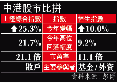 港股受內地股市拖累之餘同時受希臘危機影響,恒指昨低開逾百點後即失控下瀉,午後跌幅一度擴大至1046點或3.9%、至25617點才稍見喘定,收市報25966點,大跌696點或2.6%;H股指數瀉393點或3%,報12694點,創業板指數更瘋狂下瀉6.4%,全日主板成交額1,861億元,為約一個月來最高,當中沽空佔11.5%。港股昨日表現較A股硬淨,皆因港股今年升幅遜A股,市盈率亦較A股便宜。