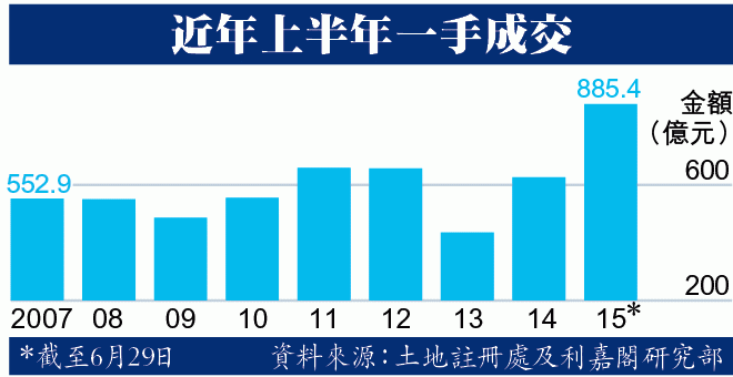 至於一手物業買賣登記累錄8,355宗,創2008年以來的上半年成交宗數新高。利嘉閣研究部陳海潮解釋,年初金管局出招收緊樓按凍結二手交投,加上發展商積極以優惠價推盤,令購買力由二手流向新盤市場。