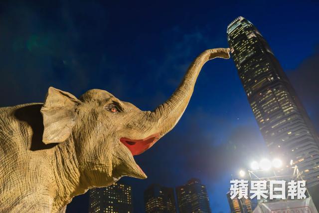 Raven:「選blue hour的時候拍吧,亦即太陽剛下山,天仍然是暗藍色的時候。因為大象有場內的黃燈映照,配上深藍天空,再取IFC作背景,便非常好看了。」