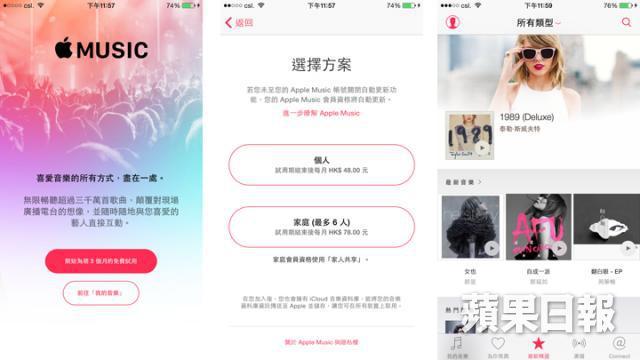 各位iOS用家,更新成8.4後,就會發現原先的音樂圖示換了新look,經過重新設計,正是6月在WWDC上發佈的Apple Music!一開始,app會要求你選擇使用個人還是家庭月費,個人為$48,家庭則是$78,最多可供6人使用。聽到要畀錢,咪走住,蘋果安排了三個月的免費試用期,反正不用錢,聽住先吧!