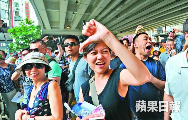 【本報訊】7.1回歸,建制派照例在港九各區舉辦慶祝活動。香港各界慶典委員會今年未有舉辦大型遊行,有親共團體就自行「吹雞」遊行賀回歸,有30多人參與,其間遇到反對人士挑釁,遊行人士高叫對方「除褲」。隊伍到達金紫荊廣場後,以普通話大叫「是中國人就過來」、「讓大家一同慶祝回歸喜事」,邀請內地旅客大合照。