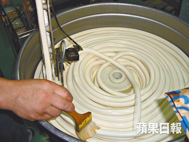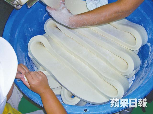 2.再用機器將麵糰弄成粗條狀,增加麵內空氣