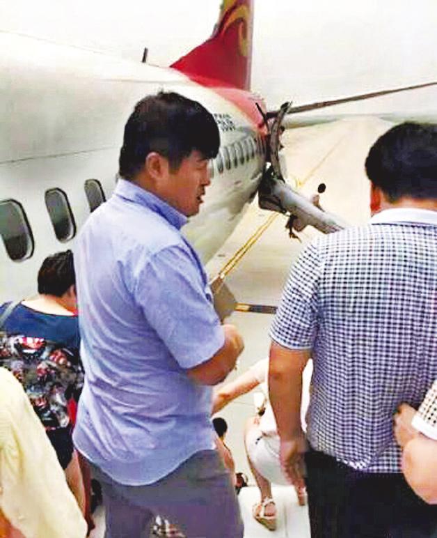 涉事的是HU7244航班,前日9時35分從合肥起飛後即被發現起火,機師決定折返合肥,半小時後降落,機組人員放下滑梯讓乘客逃生,多名乘客卻沒按指示從靠近機身的機翼滑下地面,在機翼上看熱鬧,不少更是帶着行李、穿上高踭鞋。多人更從機翼邊跳到地面,骨折受傷。大批消防員到場向飛機射水,救護車則把傷者送到醫院治療,全部傷者沒生命危險,航空公司則安排其他航班,讓乘客繼續行程。