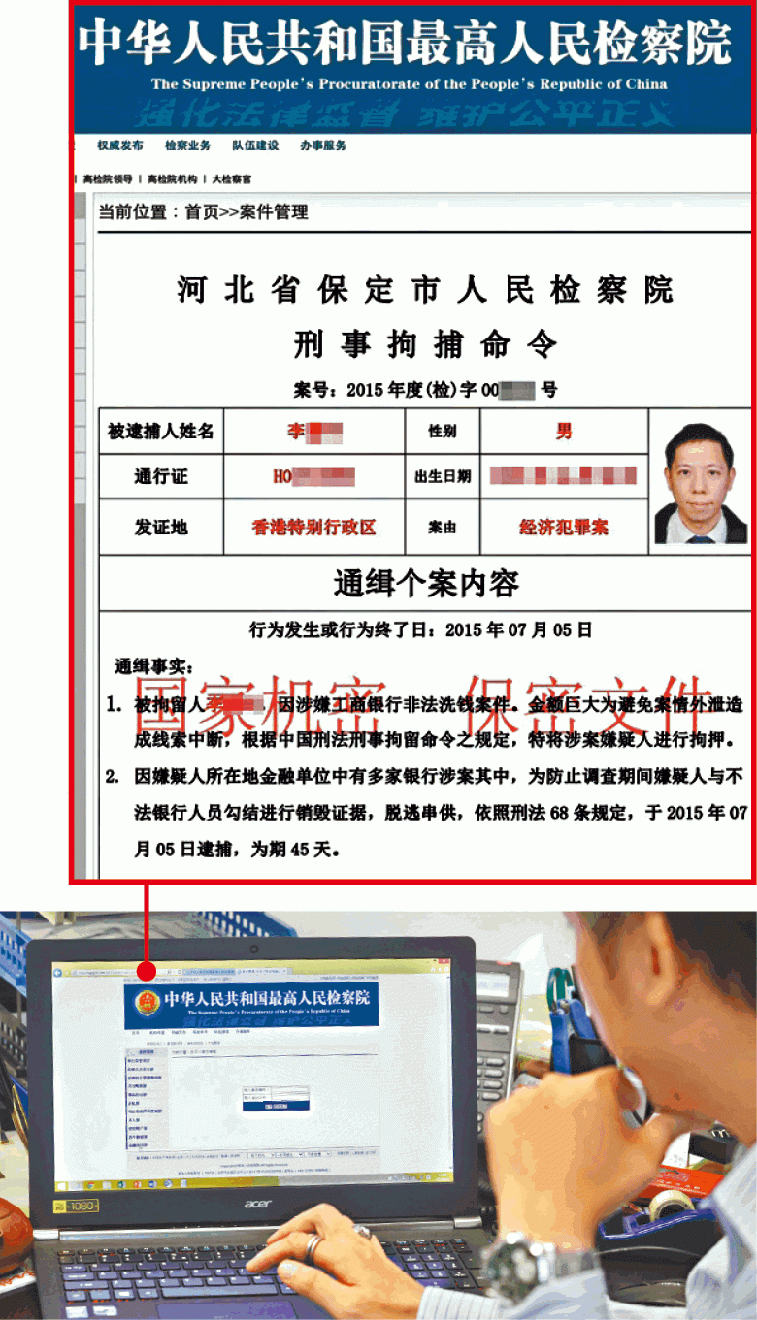 騙徒繼而指示Thomas往酒店用電腦登入指定網址「sspgov.com/0618」,其實為假的內地最高人民檢察院網頁,一輪程序後螢幕出現兩張檢察院命令,讓Thomas更惶恐。「一張係刑事拘捕令,一張係資產凍結令,由河北省保定市人民檢察院發出」,最令他震驚是上面貼有其彩色照片,「嗰吓好難唔信,特別係有相,不可思議」。