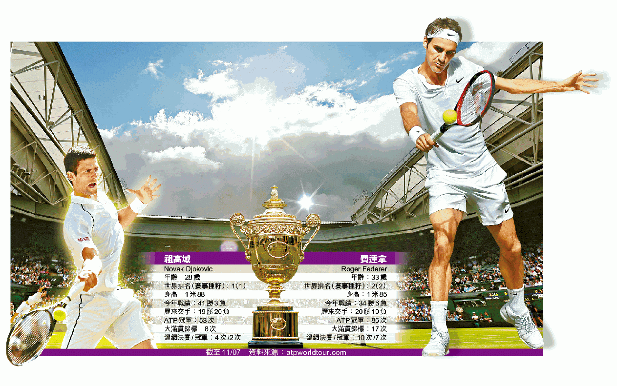 周日溫布頓網球公開賽上演男單王者之戰,33歲的費達拿與一哥祖高域上演上屆決賽翻版。不老天王費達拿在今屆溫網狀態大勇,於上周五準決賽橫掃梅禮過關,誓挫祖高域結束三年大滿貫錦標荒,並成為自公開賽時代後最年長的溫網男單冠軍。(now670台今日8:30pm直播)