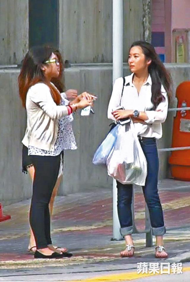 而另一邊廂的細孖Chloe,前日沒有陪伴男友,一日連走三場,仍然精力充沛。前日下午Chloe一身斯文少女打扮現身,與兩位年齡相若的女性友人,由摩星嶺乘的士到西環嘆下午茶,雖然一邊吃一邊聊天,但Chloe全程保持儀態。