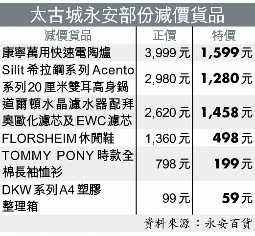 【本報訊】在太古城開業28年的老牌百貨公司永安不獲續租,下月2日結業,由誠品書店取而代之。永安推出大減價引來市民搶購,有太古城居民表示不捨;更有專程到場的顧客希望永安能在附近開舖。