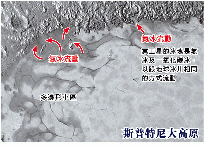 冥王星有顆神秘莫測的「冰心」,科學家正層層發掘它的驚豔之處。美國太空總署(NASA)「新視野號」(New Horizons)太空船本月14日以史上最近的距離掠過冥王星後,傳回5%收集到的相片及科學數據,清晰地展現這片心形區域的豐富地貌,更發現當中很可能擁有流動冰川。