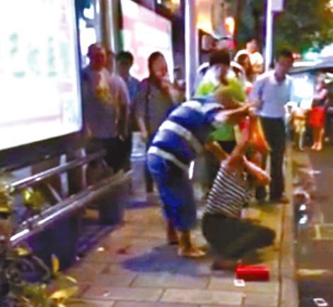 網上流傳短片顯示,秦男在公車站前扯劉女頭髮並用腳踢她,劉女大呼救命,秦便發狠用刀刺她手和腹,其間有一手執枴杖的大媽見義勇為試圖阻止但未果。事後兩人浴血當場,劉女更不支倒地躺在血泊中,並引起在場路人恐慌。有途人見狀上前制止,勇武奪走秦男所持摺刀。其後,有在附近巡邏的警員接報,隨即趕赴現場,與途人合力將秦男制服。
